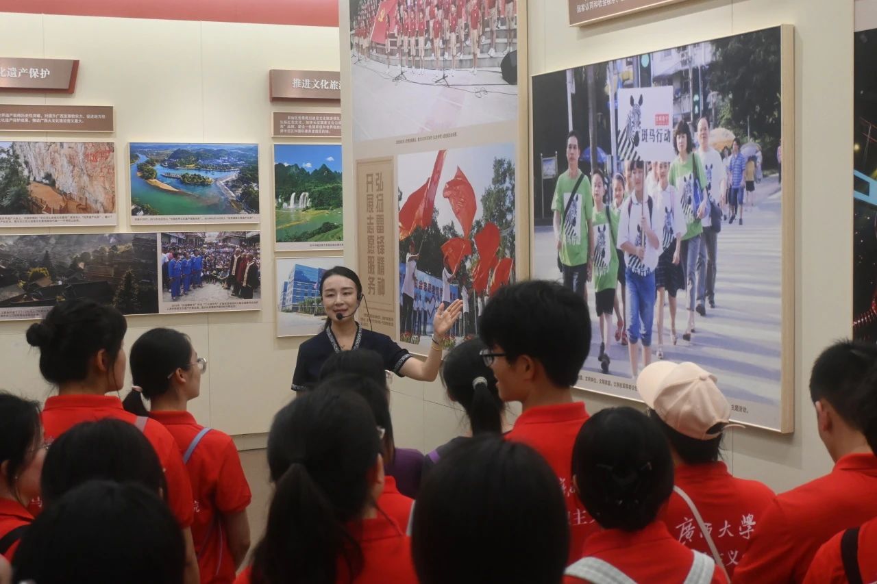 活动伊始,学员们跟随讲解员的步伐先后参观了“烽火南疆”“巨变壮乡”“潮涌八桂”“壮美广西”四大展厅。在参观过程中,学员们认真聆听讲解,不时驻足观看一系列生动的场景模型、珍贵的历史图片和档案资料,进一步了解广西这片土地上发生过的英雄事迹、感人故事和伟大成就,共同见证中国共产党团结带领广西各族人民从革命解放到如今繁荣发展的非凡历程。
