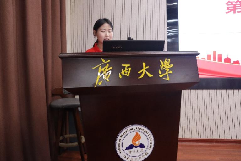 仪式在庄严雄壮的国歌声中拉开帷幕。仪式伊始,青马班班主任虞文茜老师向参会人员详细介绍了我院“青马工程”的发展情况及“六红一星”培养体系,并寄语新一期青马班学员珍惜和把握学习机会,争当一名集忠诚的政治品格、浓厚的家国情怀、扎实的理论功底和突出的能力素质于一身的青年马克思主义者。