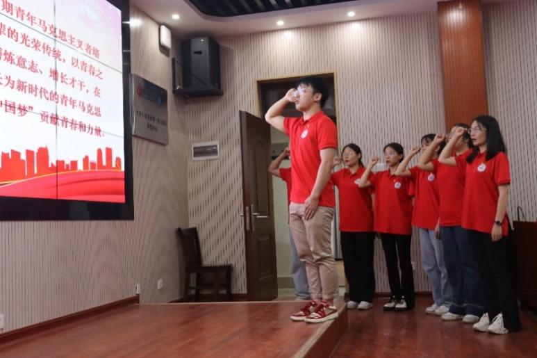 授旗结束后,第四期青马班班长李佳乐发言,表示新一期青马学员将秉承“青马”优良传统,躬身实践,努力成为懂马信马、传马悟马、学马用马的青年表率。接着,第四期青马班代表进行了宣誓,做出了为实现中华民族伟大复兴的中国梦贡献青春和力量的庄严承诺。