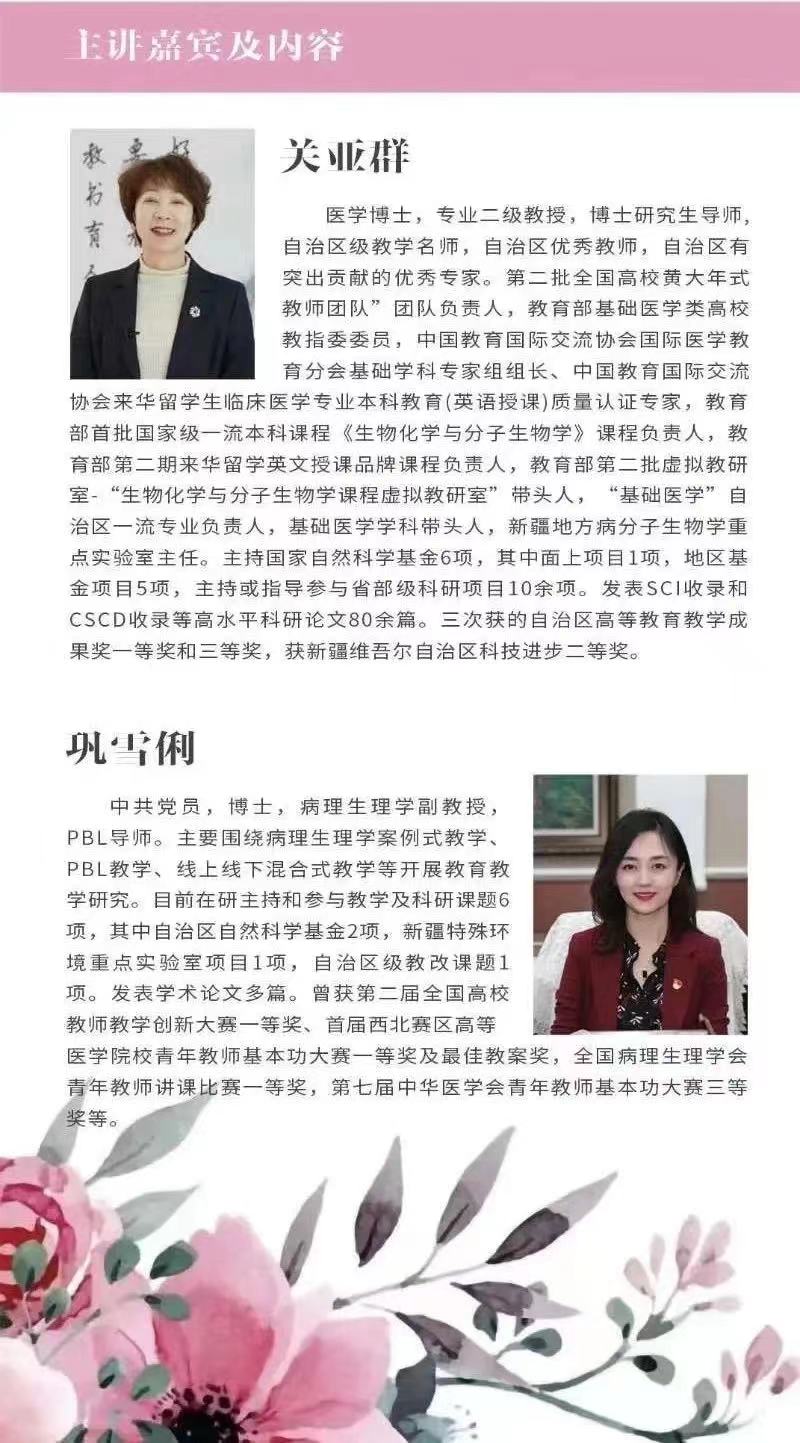 近日,新疆医科大学举办了“涵养师德匠心·厚植育人情怀”教师专业成长线上交流分享会。此次活动由教务处主办,旨在进一步弘扬先进、树立典型,充分发挥学校教学名师、能手的模范带头作用,提高全校教师的业务能力,营造浓厚的