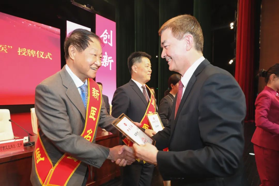 赵天杰强调,中国共产党新疆医科大学第二次党员代表大会确定了建设一流医科大学的奋斗目标,这就要求我们要聚焦国家战略、区域发展和人民健康需求,由规模扩张转向质量提升,由粗放管理转向精细运作,由硬件夯实转向“软件”建设,由同质竞争转向特色发展。作为学校改革发展的重要参与者、贡献者和推动者,广大医务工作者责任重大、任重道远。这次学校对首批“新医名医”进行授牌,就是要在全校上下营造尊医重卫的良好氛围,进一步激发广大医务工作者干事创业的精气神,凝聚起推动学校卫生健康事业高质量发展的强大合力。