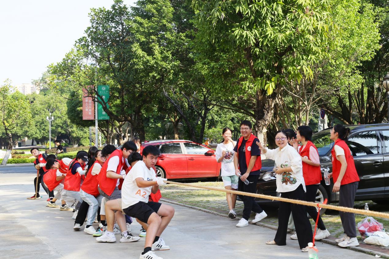 为庆祝党的二十大胜利召开,积极展现我院学生团结奋进、拼搏向上的良好风貌,进一步增强各学生班集体的凝聚力与向心力,10月22日,我院举行了第一届学生拔河比赛。学院党委副书记李海波老师、副院长肖安宝老师、团委书记虞文茜老师现场观赛,为同学们加油鼓劲。