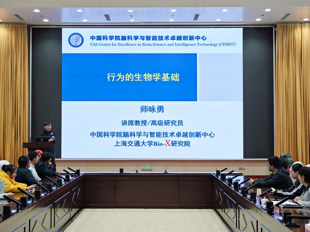 讲座伊始,师咏勇教授作《行为的生物学基础》专题讲座,从“Nature or Nurture?”这个心理学、遗传学等领域长期探讨的核心议题入手,系统阐述了大脑与行为的关联、行为差异的根源、情绪与决策的神经基础等内容,引起了同学们浓厚的兴趣。他的讲座幽默风趣,生动活泼,例举案例、创新方法引发同学们诸多思考,并进行进一步的探讨。