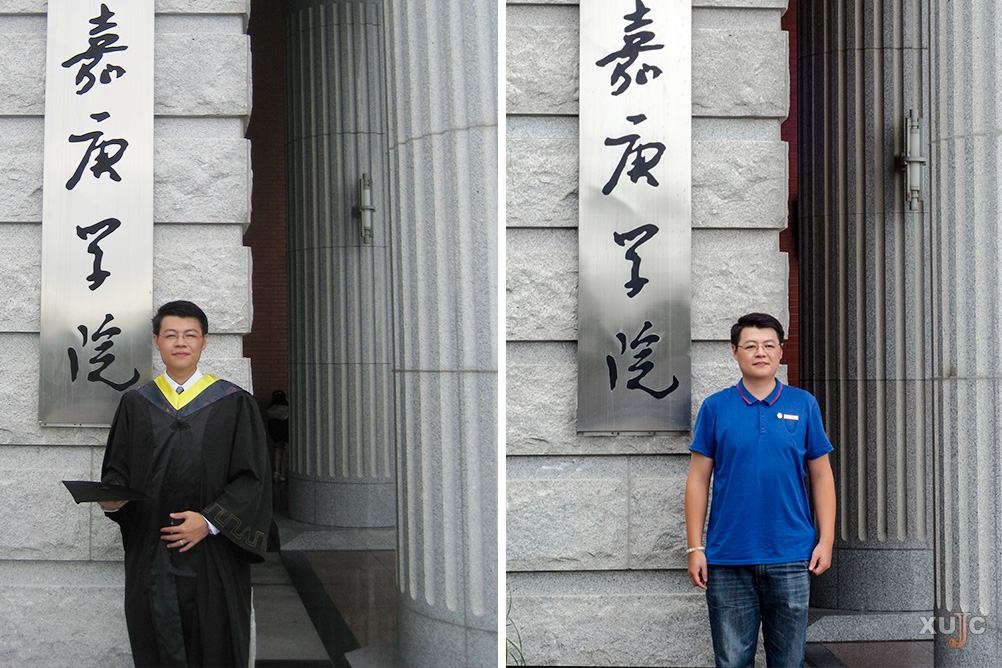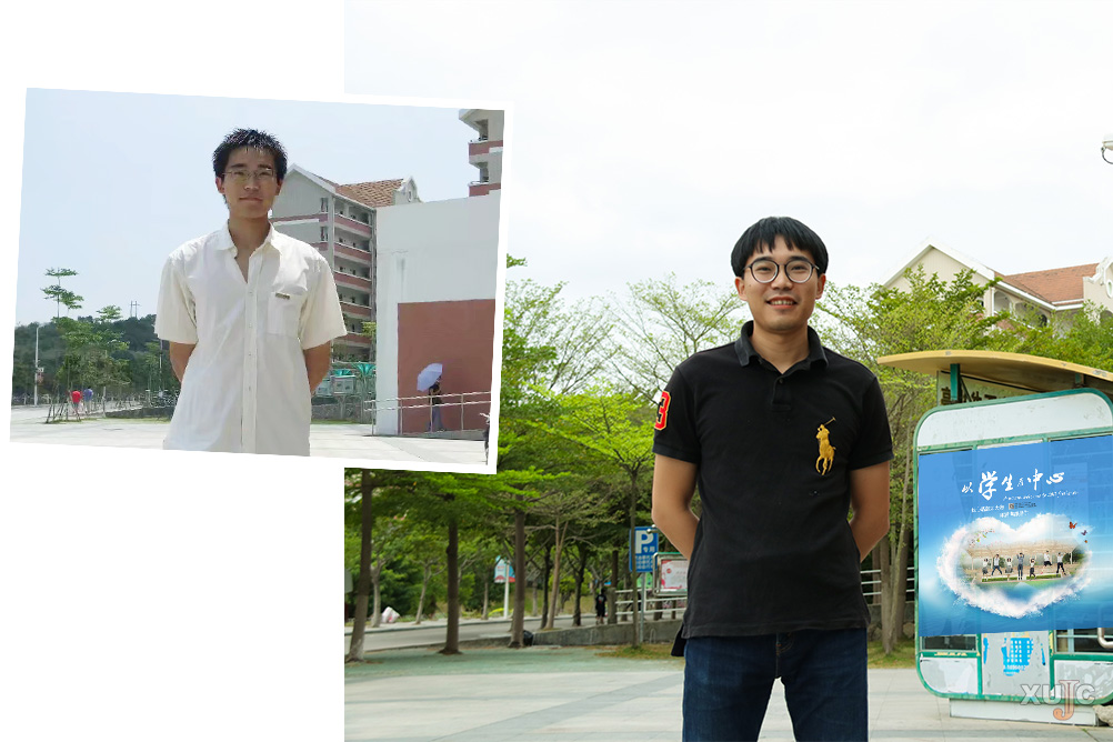 左图:大三的郑智杰,右图:2017年回校参加校友歌会的郑智杰