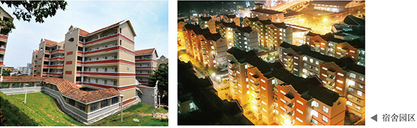 园区内配有电视机、洗衣房、开水房、乒乓球桌等设施。园区附近有银行、超市、邮局等服务机构及各类运动场所,可以满足学子的日常生活需求。园区内有专业的物业公司进行安保、保洁等管理和服务,实行保安24小时在岗制度以及物业维护快速反应机制。