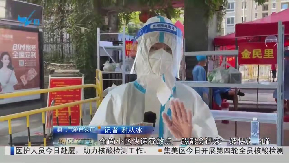 为了更好地展现厦门民众抗疫的决心,传递正能量,谢从冰和同事们走进疫情管控区做采访。到疫情管控区做采访,这也意味着面对的风险更大,但她没有退缩,“没有想太多,这是我的工作职责。”事实上,对她来说,从发出采访申请,再到防护到位出镜采访,都是一个很大的考验。她和同事约定轮班采访。每次走进疫情管控区时,她都很珍惜采访机会,“我心里总是想能多待一会儿就多待一会儿,尽可能地挖掘出新闻点。”