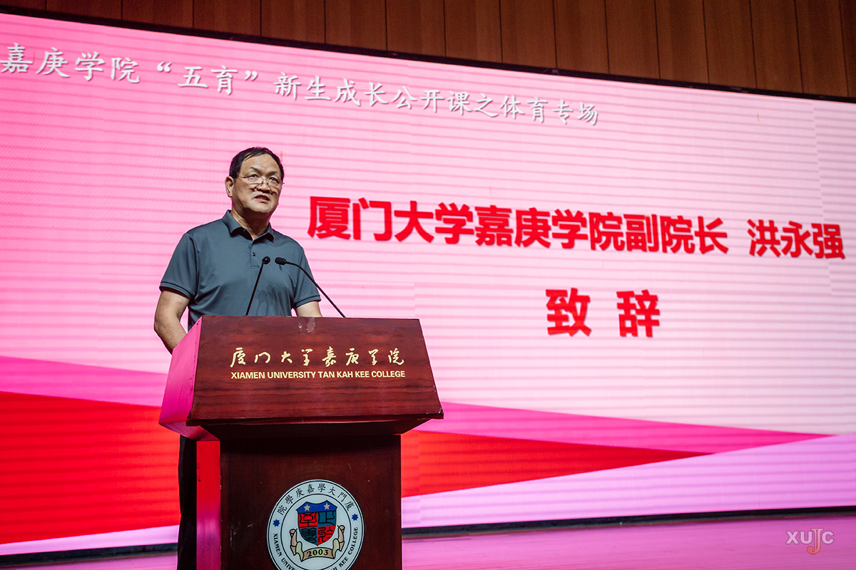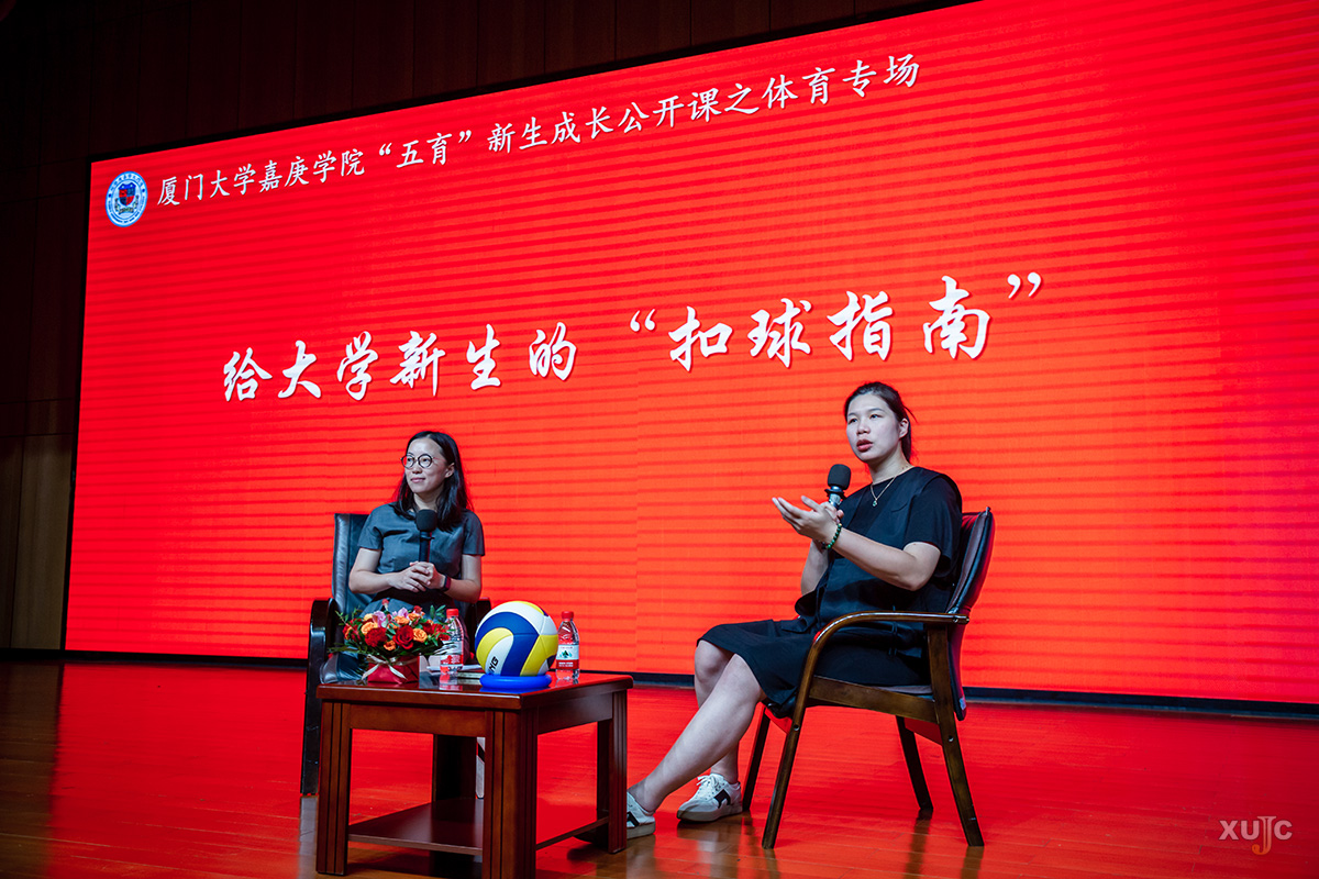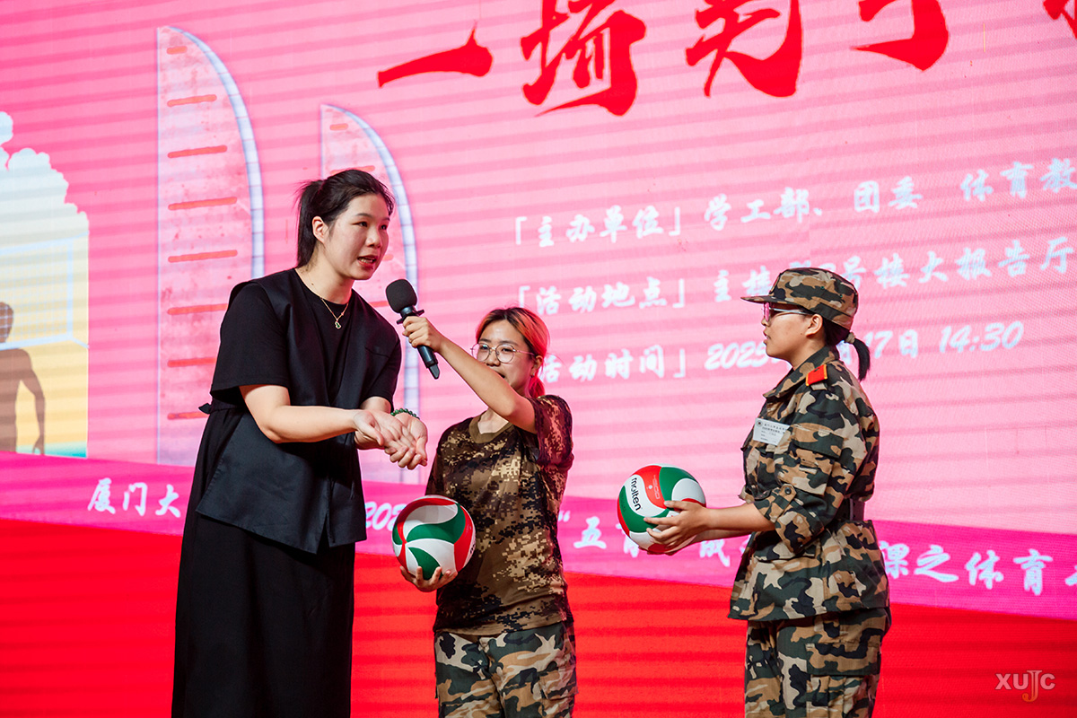 本次活动由学工部、团委和体育教学部联合主办。嘉庚学院副院长洪永强,学生军训团团长张永辉,院长助理、学工部部长、团委书记姚祖婵,体育教学部主任王惠和我校2025级新生代表、排球协会学生代表,厦门大学附属实验小学、厦门大学附属实验中学学生代表共同参与。公开课由姚祖婵主持。
