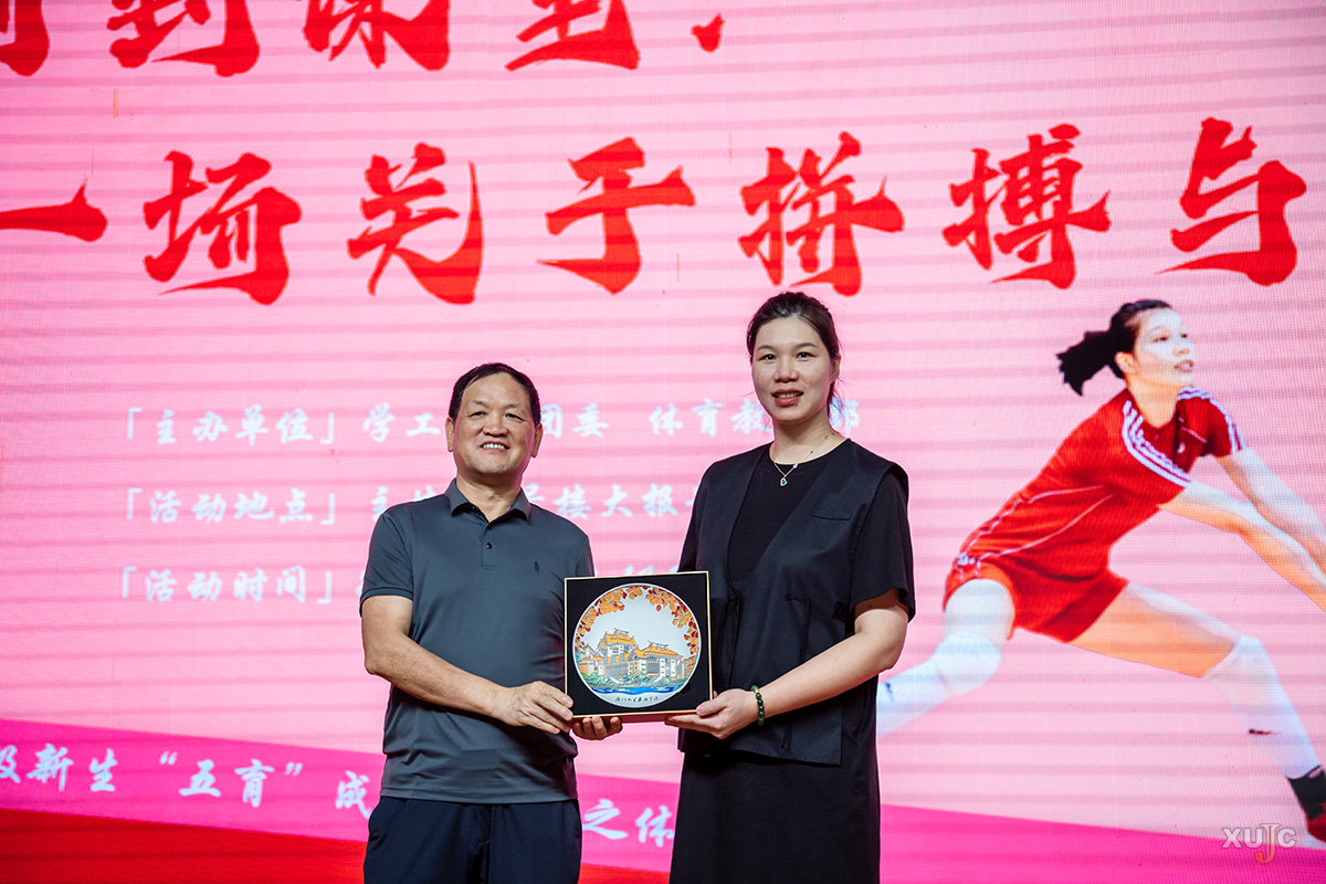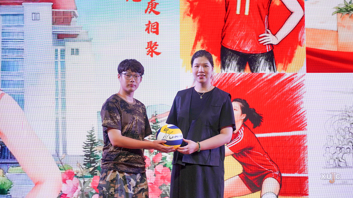 最后,徐云丽在代表着拼搏精神的排球上签下了自己的名字,并将这颗排球传递给新生代表。她希望这份永不言败的精神能像火炬一样,在新生代表手中、在同学们的心中,永远传递下去。