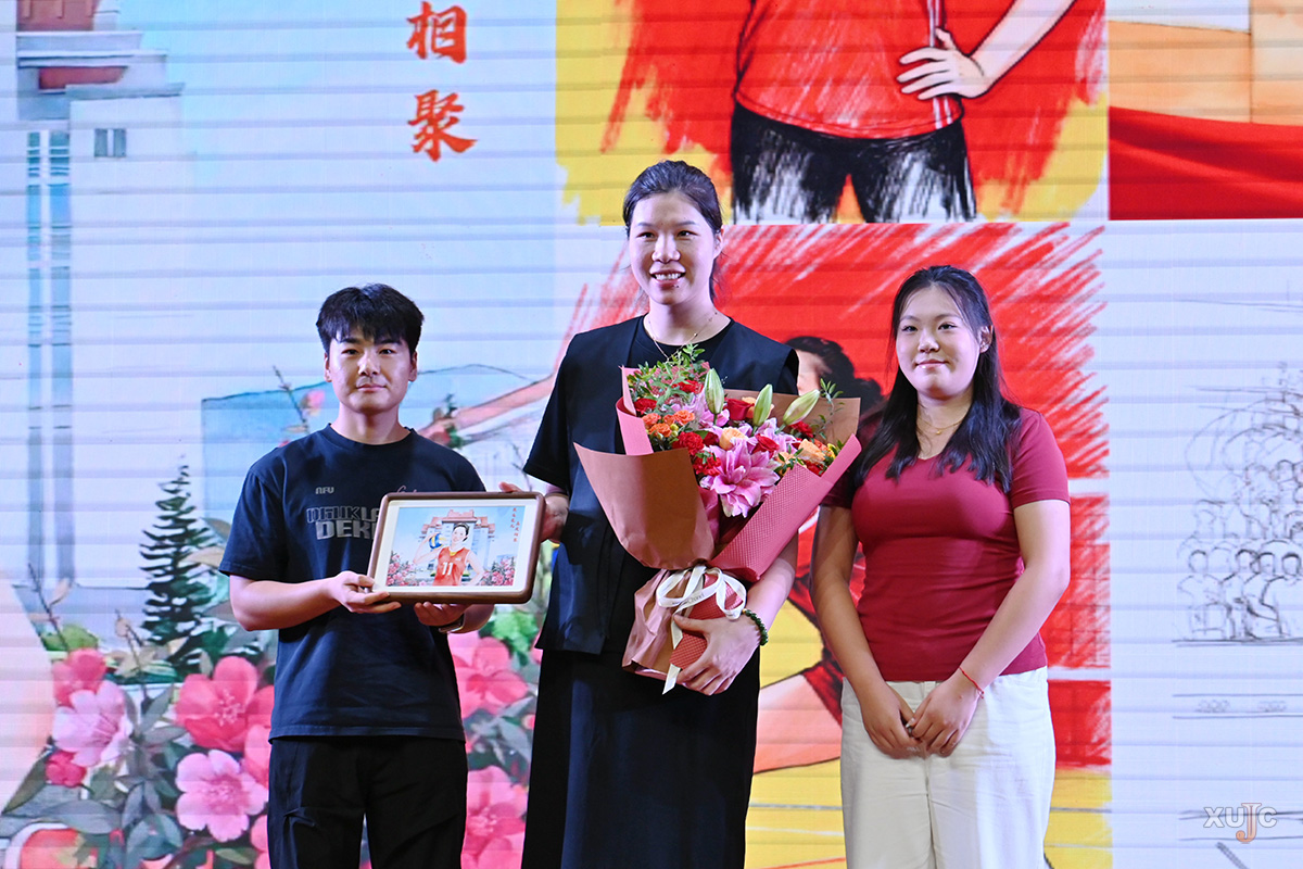 现场,洪永强为徐云丽赠送学校的特色纪念品。学生代表向徐云丽献花、赠送寄语册和原创纪念品。