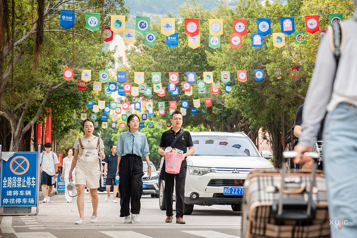 上午,校园里逐渐热闹起来,一辆辆自驾车自中门驶入,在沿路指引牌与志愿者的引导下,有序前往注册点、新生宿舍园区、停车场等。与此同时,厦门市高崎国际机场、厦门北站、鹭江码头等地,工作人员与志愿者们正以饱满的热情迎接一批又一批新生与家长,指引他们搭乘专车、专船到校。