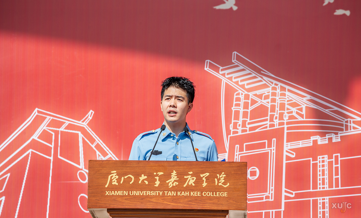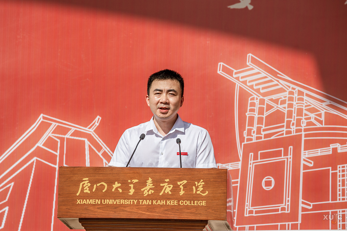 “期待你们善用嘉庚学院的‘弹性’与‘包容’,成为自主发展的规划者;期待你们融入嘉庚学院的‘实践’与‘创新’,成为知行合一的践行者;期待你们传承嘉庚学院‘担当’与‘情怀’,成为有温度的建设者。”教师代表、设计与创意学院院长林波教授以过来人的身份,和新生分享了三点期待。他表示,老师们将恪守“敬业、合作、务实、创新”的理念,作为新生学业上的引路人、成长中的守护者。他祝愿2025级新生能传承嘉庚精神,拥抱时代机遇,最终成长为有智慧、有担当、有情怀的新时代青年。
