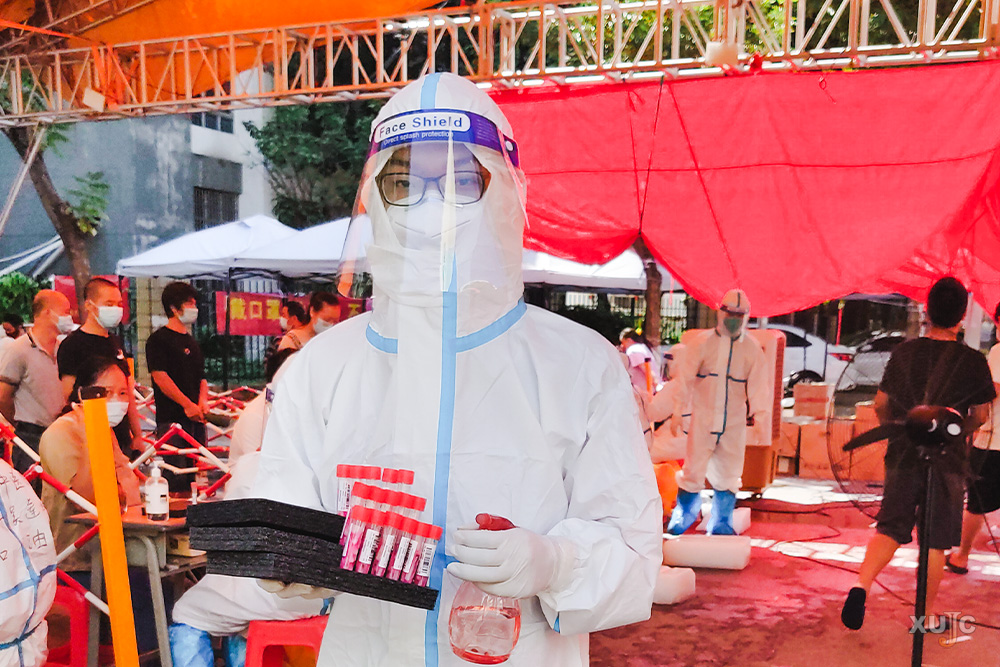 游仁杰是我校机电工程学院2021届校友,刚毕业3个多月。他所在的公司厦门蒙发利电子有限公司位于厦门市同安区新民镇。在这波疫情中,新民镇被划为高风险地区。当看到公司发布的志愿者招募信息后,游仁杰豪不犹豫地报了名,前往同安前埔里核酸采集点,协助核酸检测工作的开展。他说:“一方面,之前去做核酸时,我感受到了医务人员和志愿者的辛苦,希望有机会能帮上忙;另一方面,我们所在的新民镇是疫情的重灾区,我想尽一份力,希望疫情早点结束。”