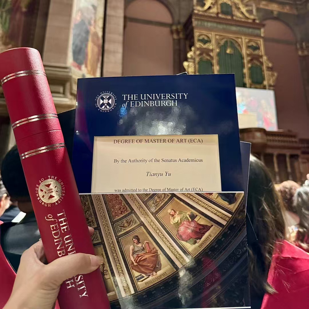 余天羽,我校人文与传播学院广播电视学专业2023届校友。11月29日,她在英国爱丁堡大学毕业典礼上获颁艺术硕士学位(电影导演方向)。在新华社、中国日报、人民网等各大媒体发布的视频中,她身穿苗服,头戴闪亮的帽子上台,并邀请院长共跳苗族传统舞,那一刻,民族自信在满堂掌声中具象化。