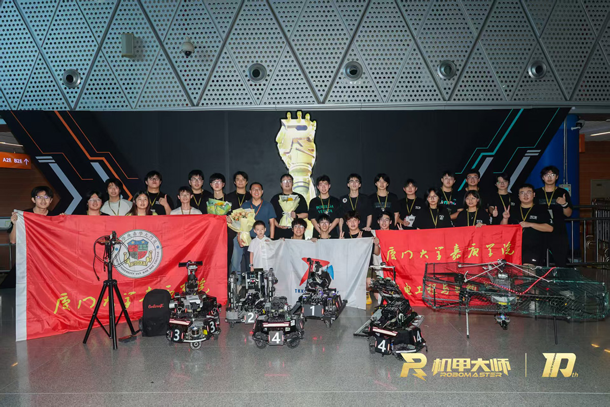 值得一提的是,“TCR”战队名称的前两个字母取自我校英文简称“TKKC”(Tan Kah Kee College),“R”代表“RoboMaster”(机器人),同时蕴含“Team”(团队)、“Creative”(创新)、“Responsible”(责任)的深刻寓意,体现了“以强烈的集体荣誉感、卓越的创造力和高度的责任心投入竞赛”的建队宗旨。本届赛事中,战队30余名队员来自机电工程与自动化学院、信息科学与技术学院、法学院、人文与传播学院等多个学院,形成了机械设计、电控技术、算法研发、赛事运营等多领域协同的完整团队架构。凭借跨学科、跨专业的融合优势,战队在激烈竞争中冲出重围,获得全国赛南部赛区一等奖,顺利晋级全国总决赛(复活赛),共捧回了8个奖项。