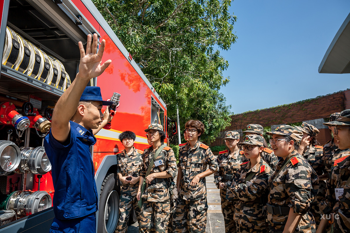 同时,活动现场的消防车成为了新生们关注的焦点。新生们有序地进入消防车内部参观,近距离、直观地了解消防车的功能结构。