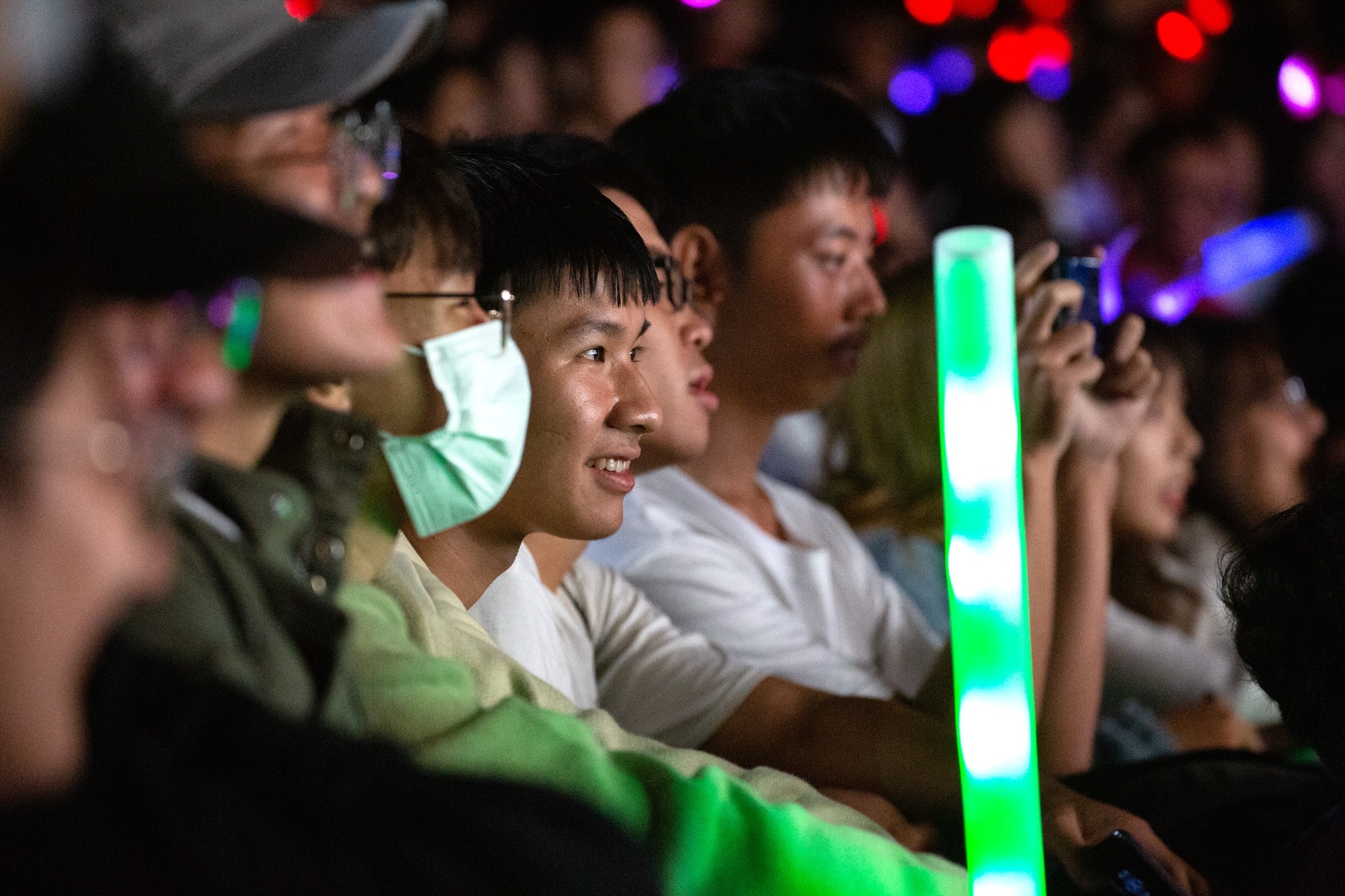 “我和我的大学都是十八岁,十八岁的晚会好燃!”(摄影:朱鲜艳)