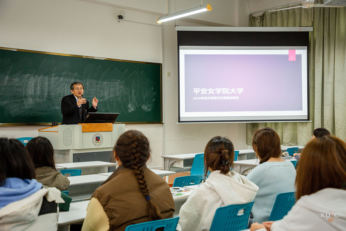 当日下午,在主楼群1号楼217教室,京都平安女学院大学2024年度“2+2”留学项目说明会如期举行。毛利宪一理事长详细介绍了京都平安女学院大学的学校历史、专业设置、国际交流等方面的情况,并对即将启动的2024年秋季入学“2+2”留学项目做了深入解读。在说明会的互动环节,毛利宪一理事长与在场学生进行了交流,表达了对嘉庚学院学子赴日留学的热烈欢迎及期待。