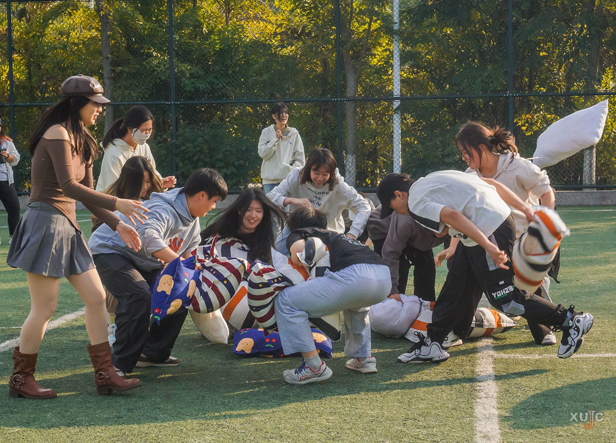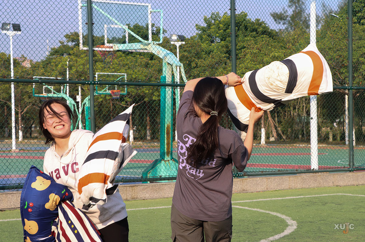 在第二轮活动中,所有学生分为两个阵营,守护自家的枕头,并去争抢对方阵营或场地中央的枕头。占有枕头更多的队伍获胜。同学们之间充满着对抗的热情。
