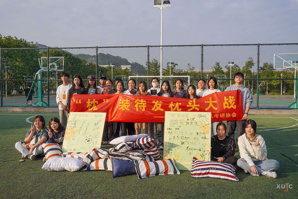 2024年全国硕士研究生招生考试(初试)将于2023年12月23日至25日举行。为了帮助考生缓解考研压力,用更好的心态面对考试,近日,在五人制足球场,心灵“嘉园”与晨读队联合举办“枕”装待发枕头大战考研专场活动。