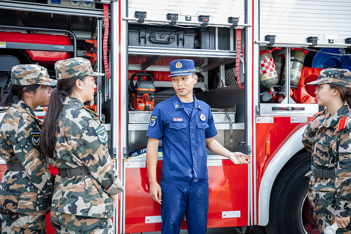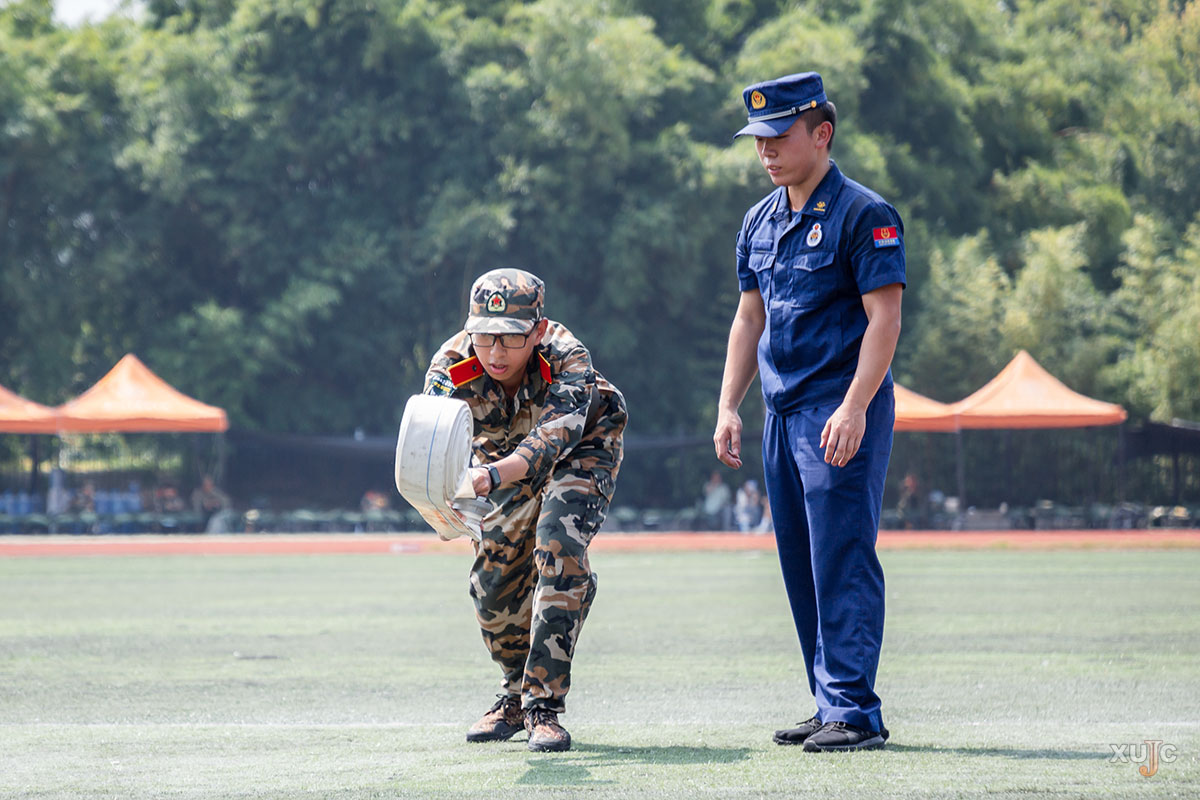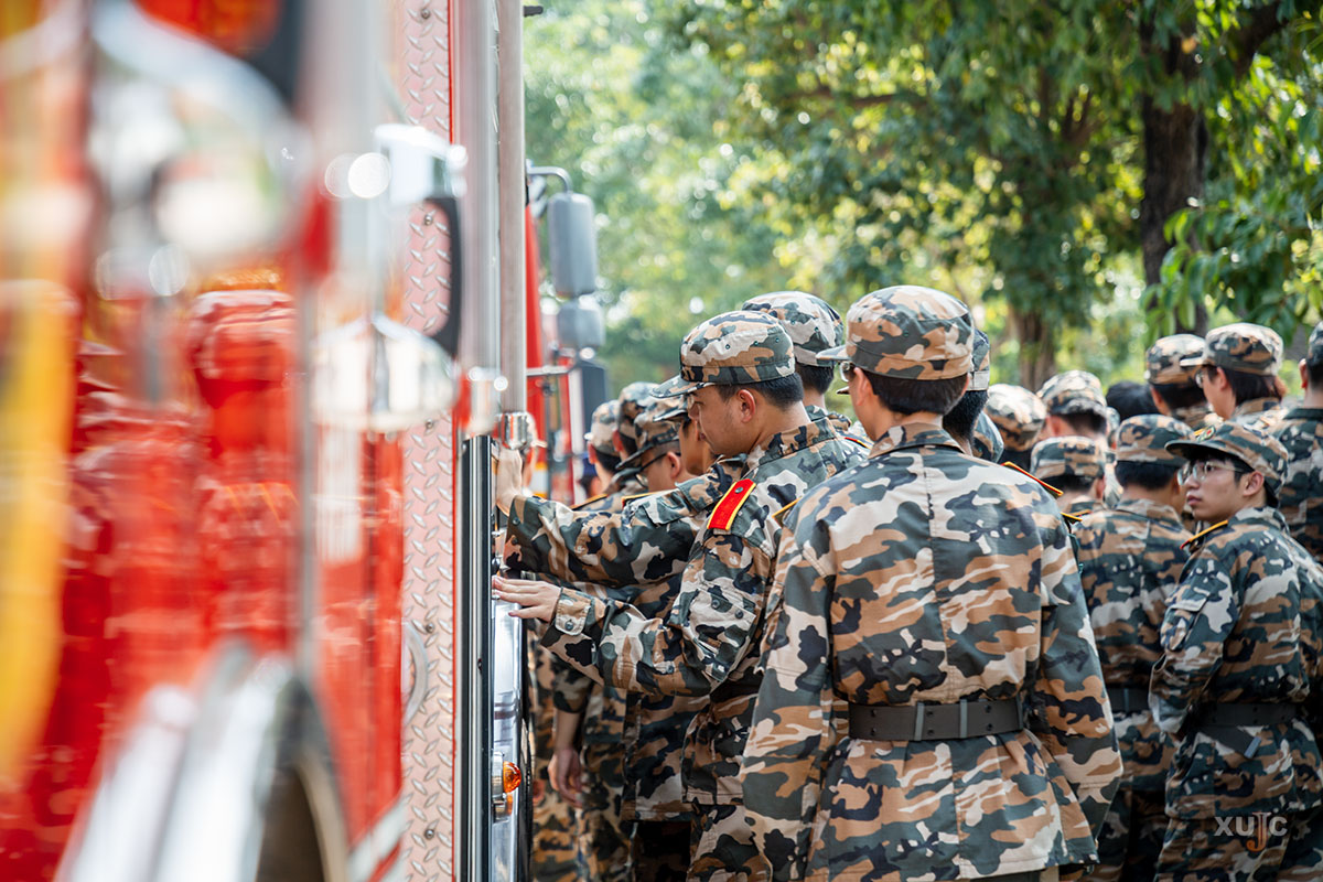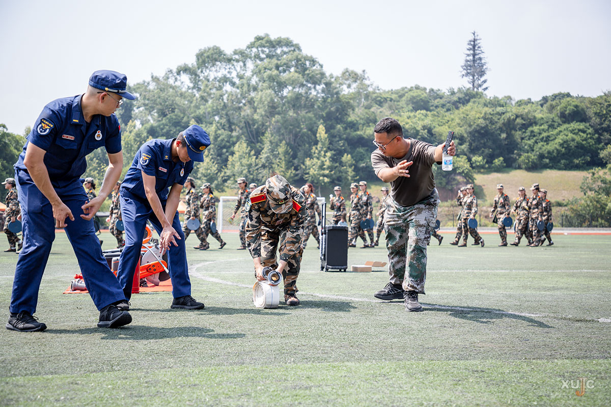 在消防队员们的耐心指导下,新生们纷纷动手实践,亲身体验了灭火器的使用、消防水带的铺设与收卷,感受到了消防工作的严谨与细致。