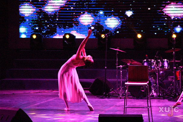 2015届校友吴筱和荷兰籍交流生Sander深情对唱他们自编自谱的歌曲《飞行日记》,风格迥异的音色、配合默契的表演让现场观众的掌声停不下来。表演过后,在主持人的“逼问”下,他们向大家讲述了他们的跨国爱情故事。在全场观众的呼喊下,Sander羞涩地抱住吴筱,深情地相吻,全场观众发出一阵阵尖叫声与掌声。