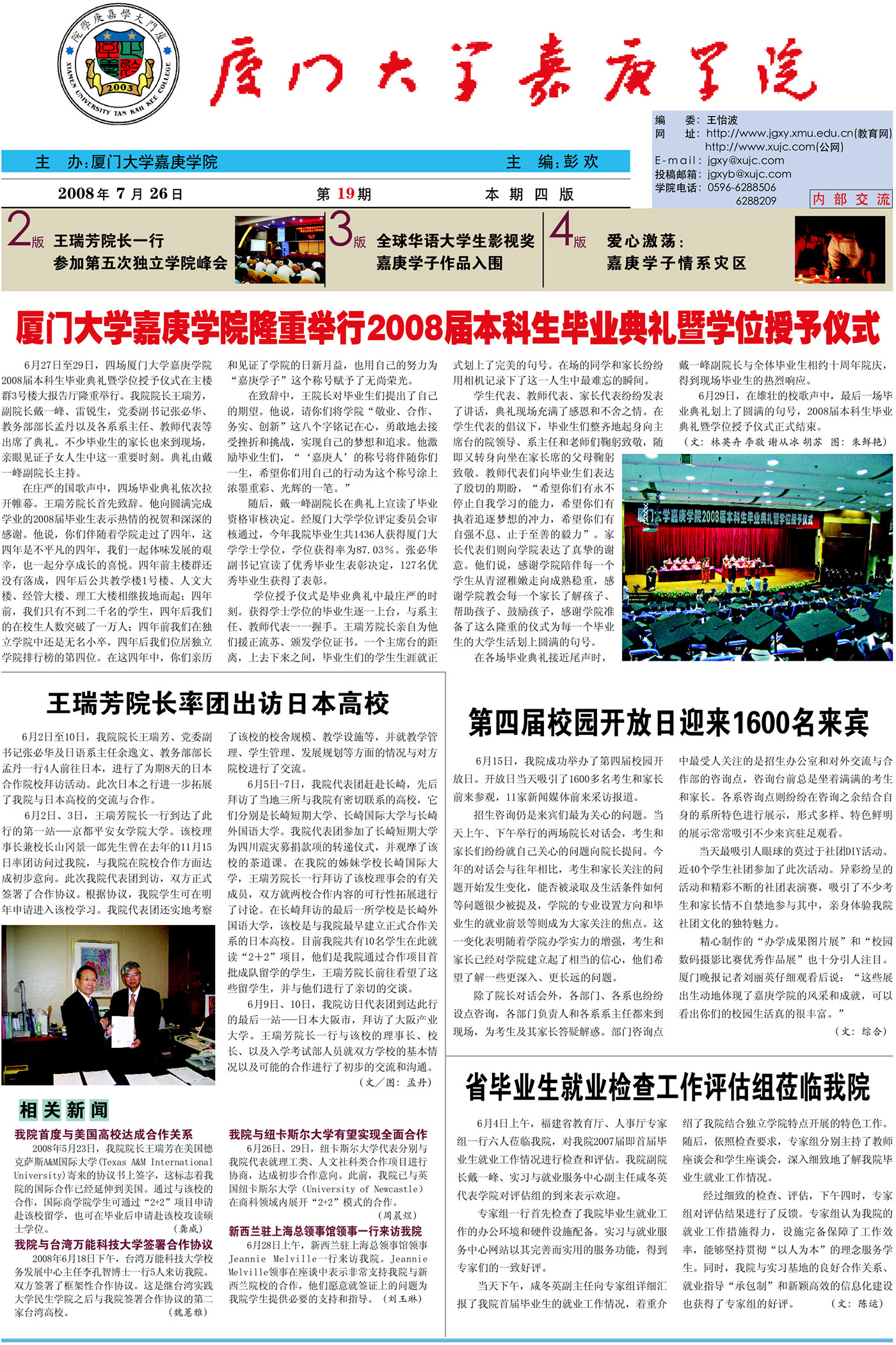 厦门大学嘉庚学院隆重举行2008届本科生毕业典礼暨学位授予仪式