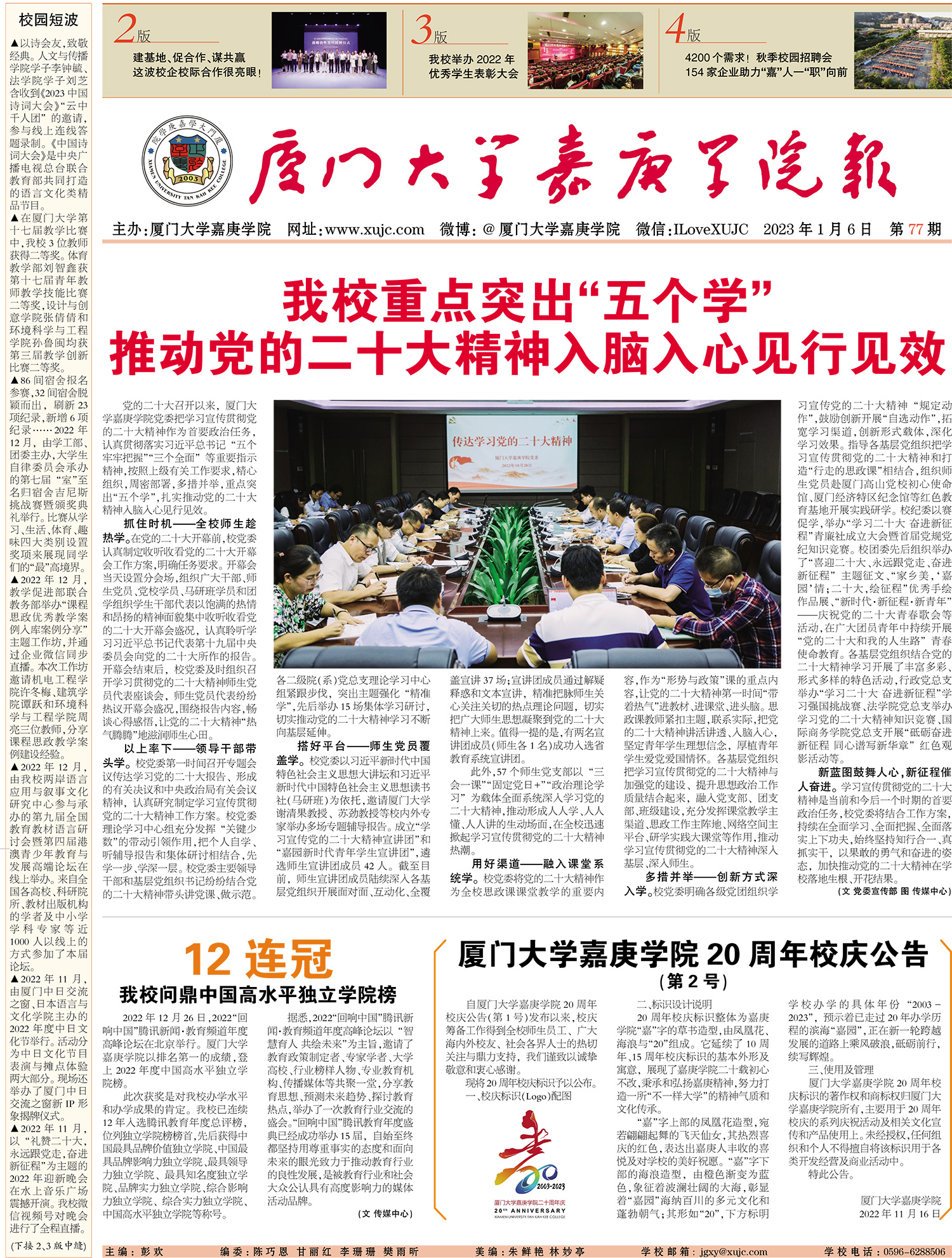 厦门大学嘉庚学院20周年校庆公告(第2号)