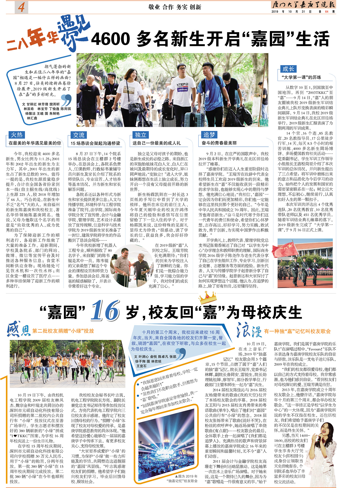 二八年华遇见你 4600多名新生开启“嘉园”生活