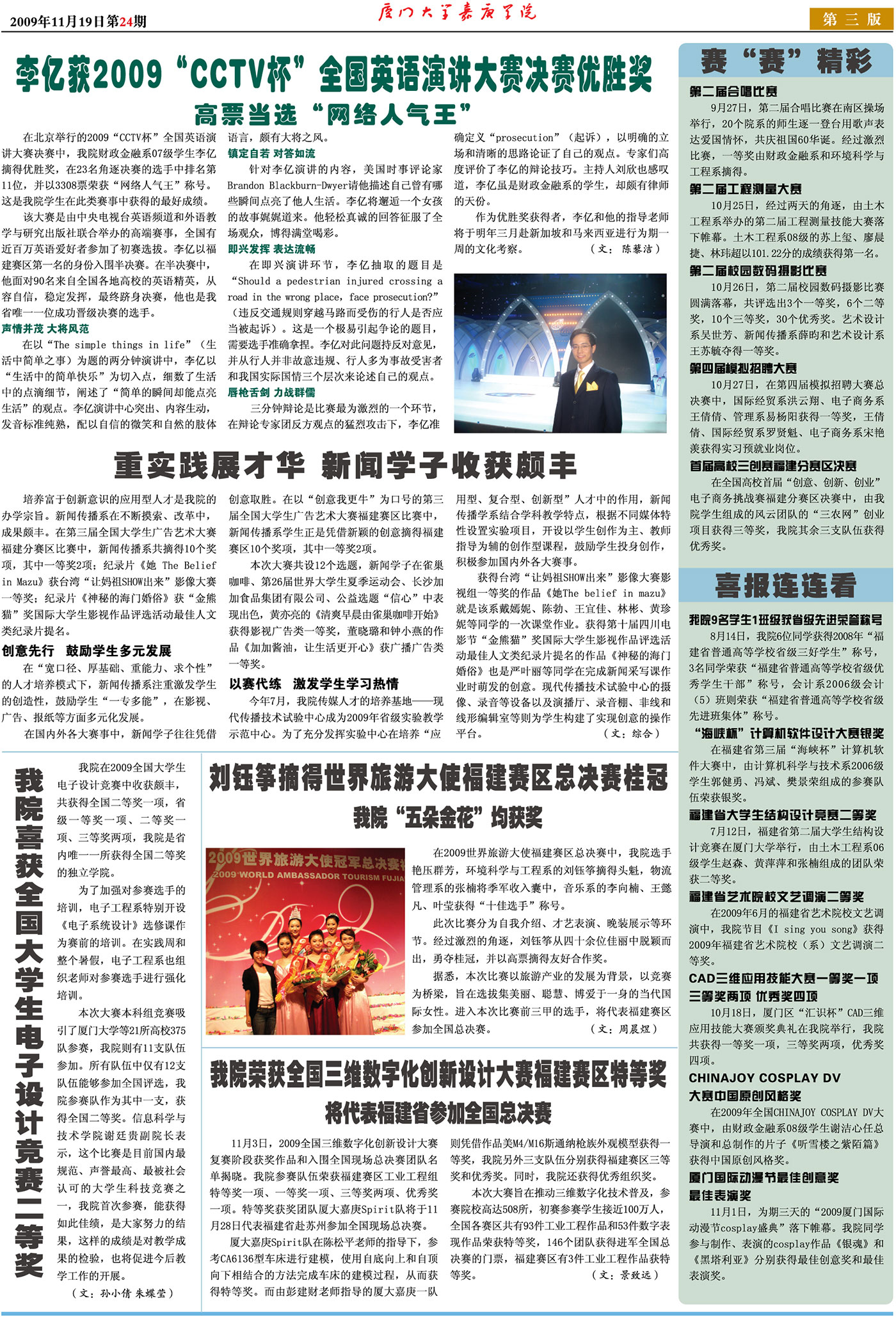 李亿获2009“CCTV杯”全国英语演讲大赛决赛优胜奖