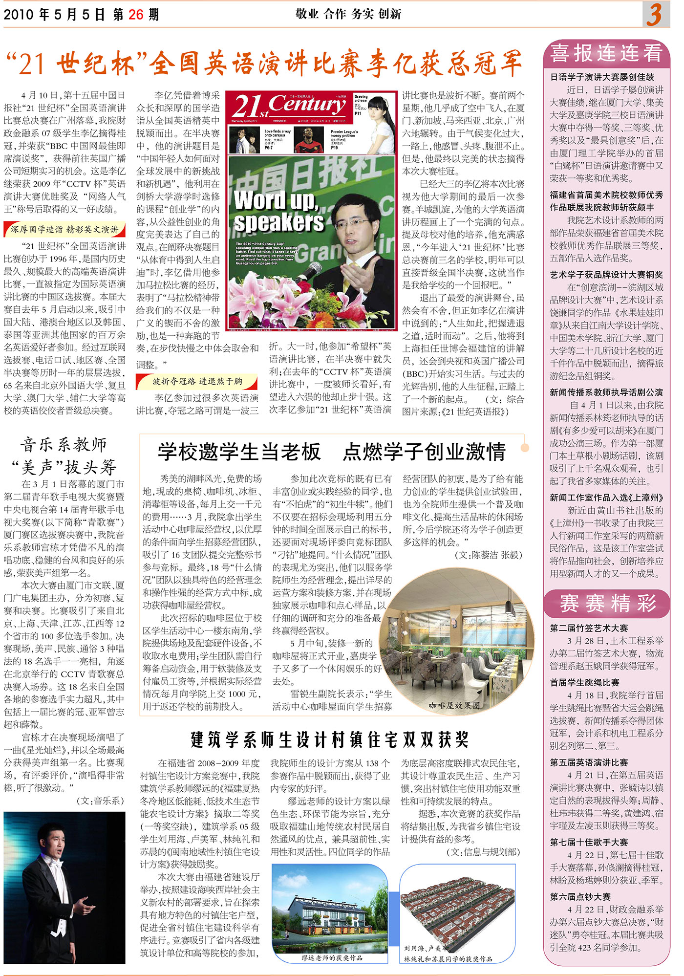 “21 世纪杯”全国英语演讲比赛李亿获总冠军