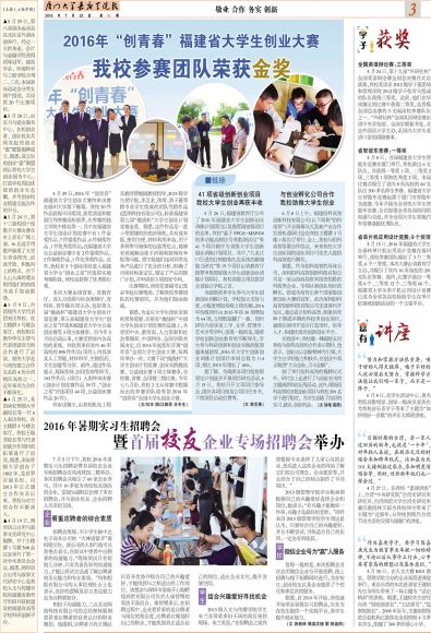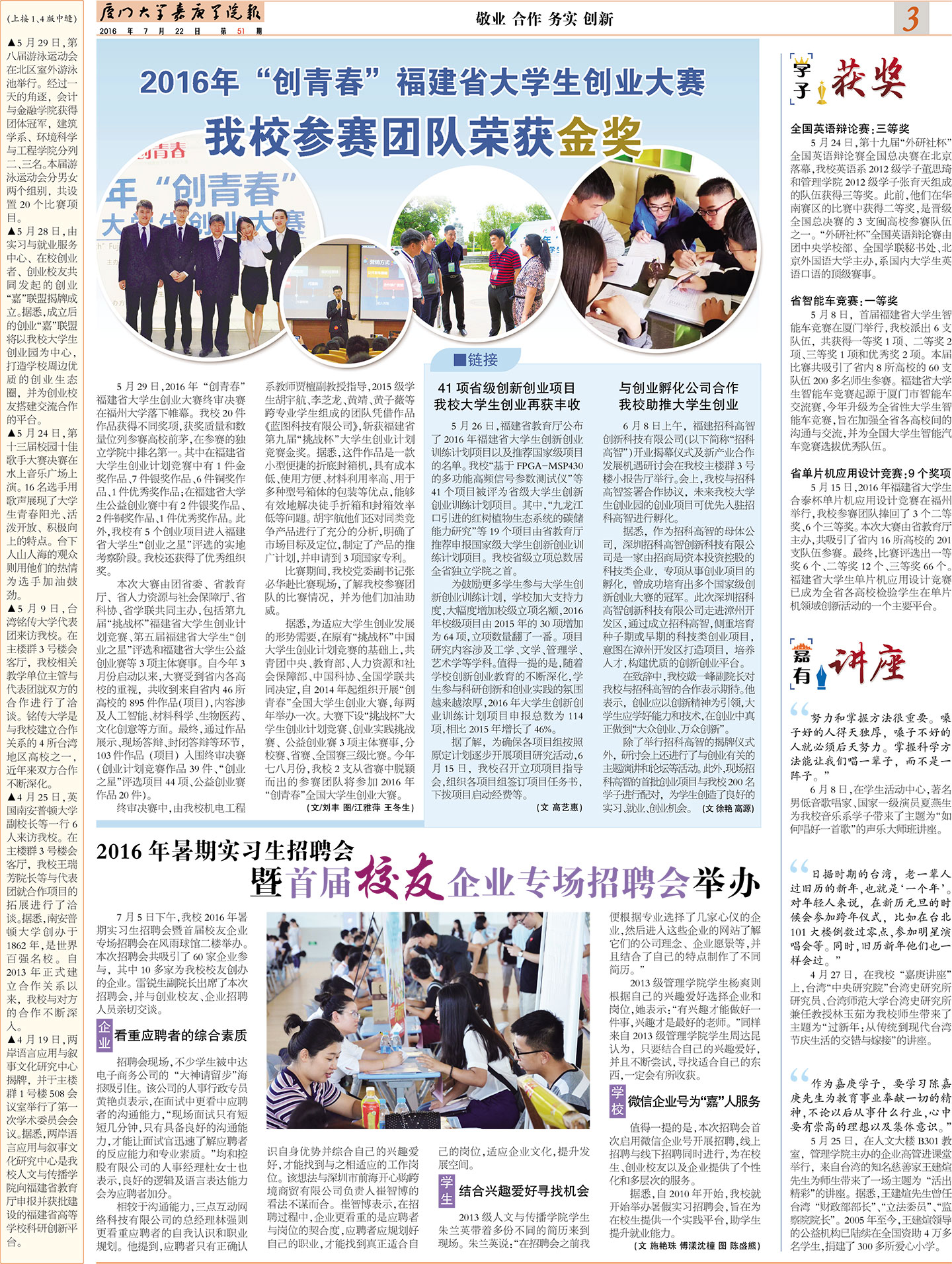 2016年“创青春”福建省大学生创业大赛 我校参赛团队荣获金奖