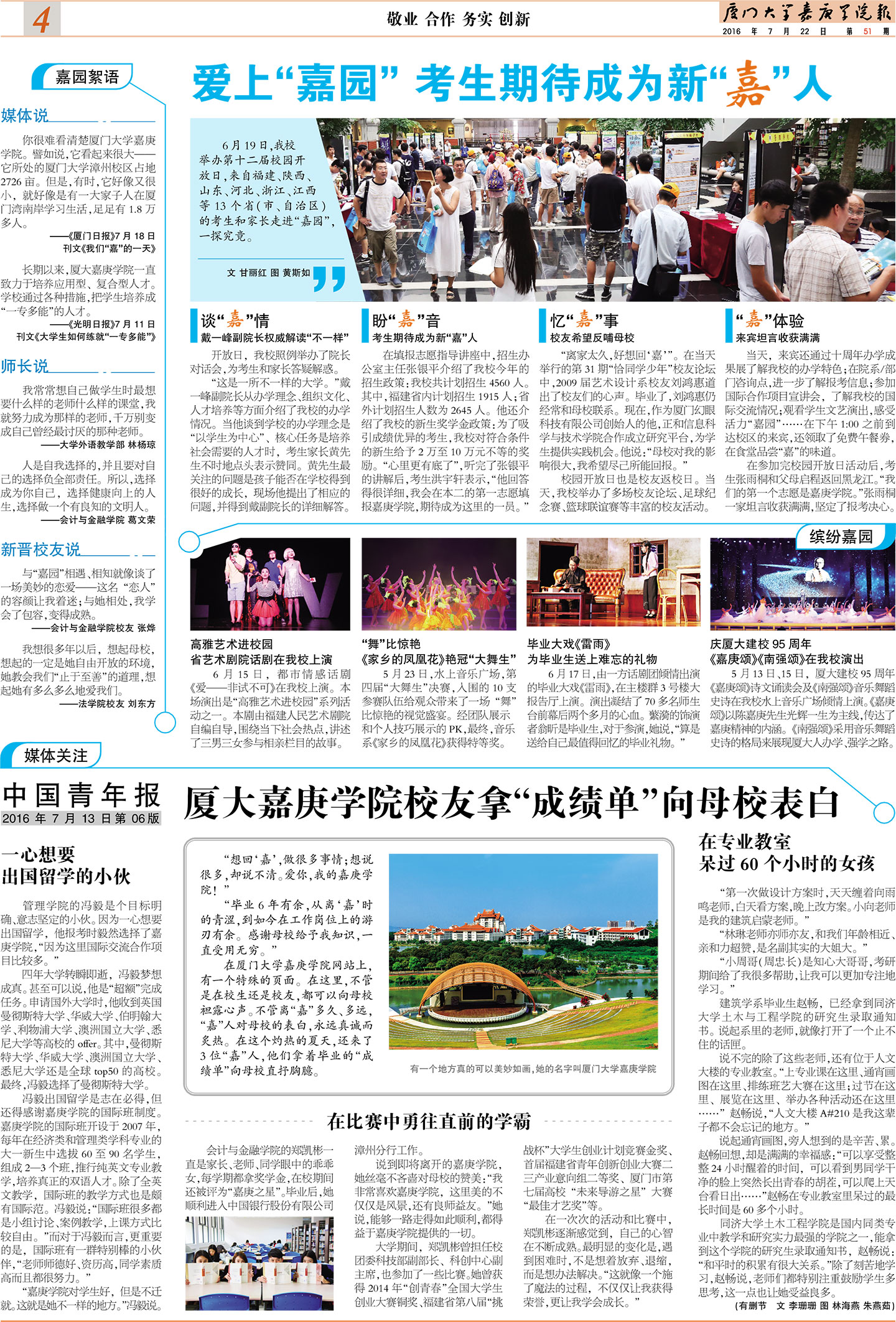 中国青年报:厦大嘉庚学院校友拿“成绩单”向母校表白