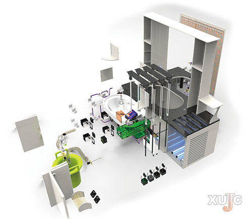 梁淯贤介绍,为了保证即开即热或即冷的效果,这款洗手池装置了6个半导体制冷设备和大功率的加热管。洗手台的下方有自动升降毛巾挂架和内置毛巾烘干消毒机,只要把毛巾放在挂架上,挂架就会自动下降开启烘干装置。为了照顾没有力气拧毛巾的小孩和老人,在洗手池近手处还安放了自动拧毛巾的装置。这款洗手池的神奇之处还体现在带有传感器和加热板的镜子上——出现水雾时,镜子就能自动加热除雾。为了达到资源循环利用的效果,梁淯贤和黄伟斌为洗手池配备了两根管道,废水排出时,其中一根排水管会将水排入废水收集桶,当水位传感器检测到水桶中的水满了,另外一根排水管会将水排到下水道,这样,用户就可以把排水管接到马桶的储水箱等其他地方,实现室内水系统的循环利用。
