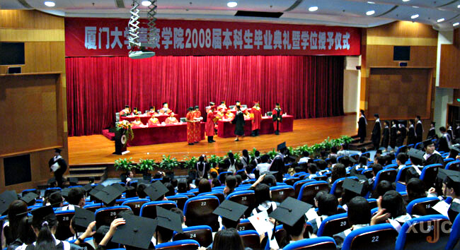 6月27日至29日,四场厦门大学嘉庚学院2008届本科生毕业典礼暨学位授予仪式在主楼群3号楼大报告厅隆重举行。我院院长王瑞芳,副院长戴一峰、雷锐生,党委副书记张必华、教务部部长孟丹以及各系系主任、教师代表等出席了典礼。不少毕业生的家长也来到现场,亲眼见证子女人生中这一重要时刻。典礼由戴一峰副院长主持。