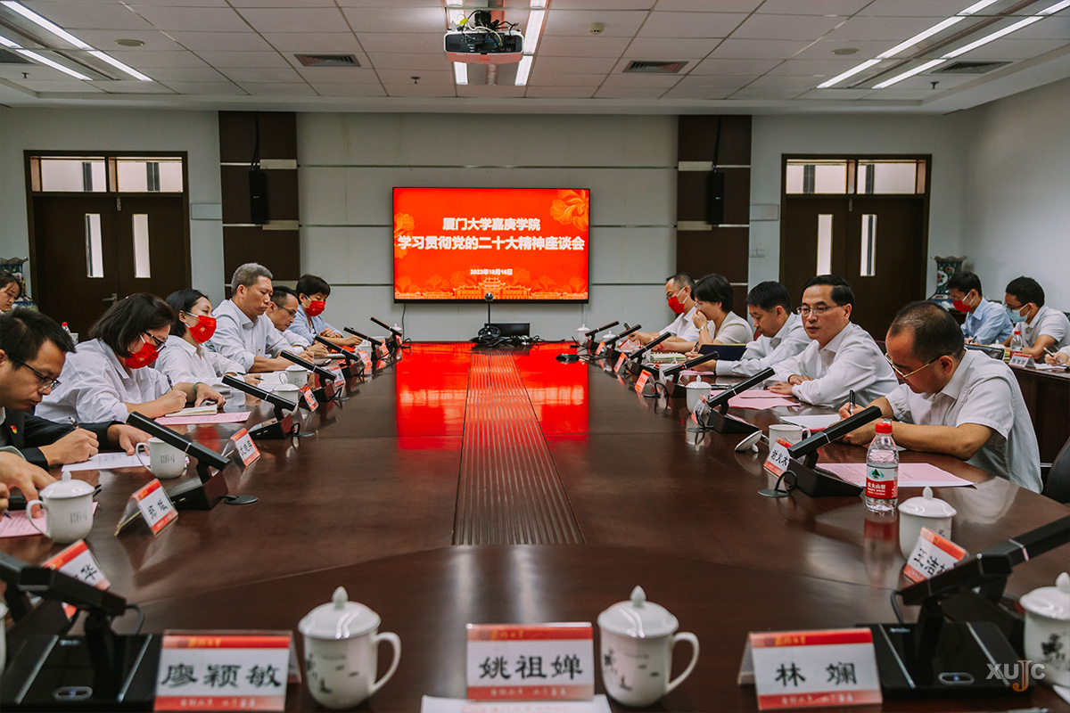 凝心聚力擘画复兴新蓝图,团结奋进创造历史新伟业。10 月 16 日至 10 月22 日,举世瞩目的中国共产党第二十次全国代表大会在北京召开。这是在全党全国各族人民迈上全面建设社会主义现代化国家新征程、向第二个百年奋斗目标进军的关键时刻召开的一次十分重要的大会。厦门大学嘉庚学院全体师生以饱满的热情和昂扬的精神面貌,多渠道多形式认真收听收看大会盛况,热烈讨论大会报告,认真学习大会精神。