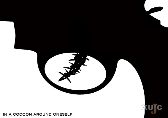 在“爱和平·铭记历史”——纪念中国人民抗日战争暨世界反法西斯战争胜利70周年主题创意海报征集活动中,我校人文与传播学院教师石廷金的系列作品《In a Cocoon around Oneself》荣获专业组佳作奖。该作品用带刺铁丝防护网束缚手枪的扳手,寓意战争发动者想发动战争必先受其害,必将作茧自缚,倡导世界和平。石廷金的其他作品还在首届“学院派奖”全国艺术与设计大展中获奖,并入选2015国际华文设计海报邀请展。