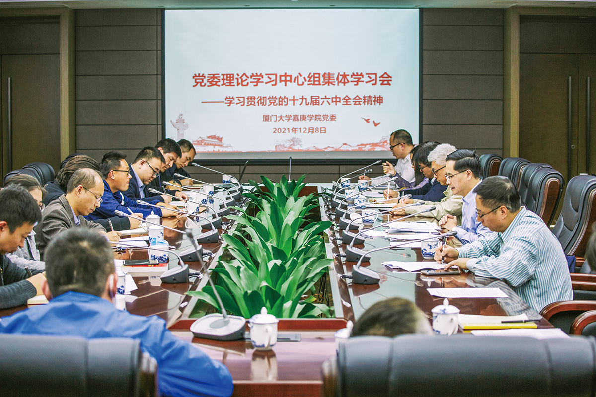 2021年12月8日下午,我校党委理论学习中心组召开专题学习会,传达学习贯彻党的十九届六中全会精神。会议由党委书记邱伟杰主持。会上,全体人员集体研读党的十九届六中全会公报全文,雷锐生、林瑞榕、王洁松、姚祖婵、易强、张菊香、易欣、郑斌依次作重点发言。