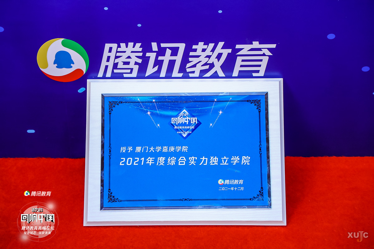 2021年12月14日,由腾讯教育主办的2021“回响中国”腾讯教育高峰论坛在北京成功举行。继2020年被评为“年度综合实力独立学院”后,厦门大学嘉庚学院再次以总分排名第一的成绩登上“2021年度综合实力独立学院”榜。我校连续11年问鼎腾讯网教育产业价值榜(独立学院榜)。