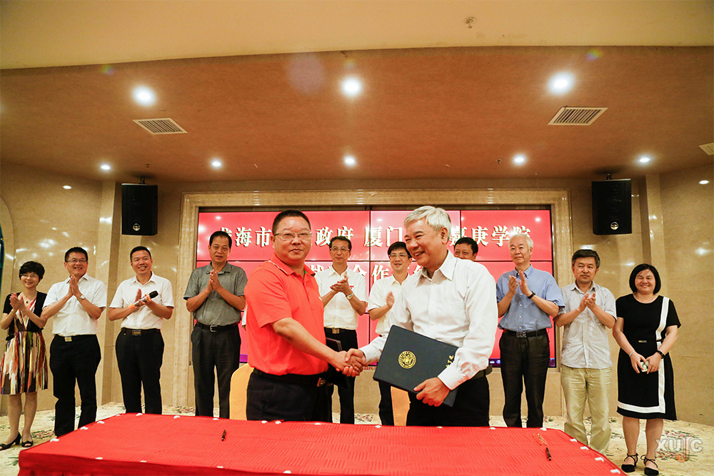 龙海市委书记郑隆松,市委副书记、市长何才成,市人大常委会主任郑明福,市政协主席高伟强,市委副书记王劲东,市委常委、组织部部长蔡国荣,市委常委、副市长林香娣和市直相关单位负责人;厦门大学党委副书记、纪委书记赖虹凯,嘉庚学院院长王瑞芳、党委书记林辉、副院长鲁同安、副院长刘暾东、院长助理王冬梅和相关学术单位、行政部门负责人参加了签约仪式。何才成和王瑞芳代表双方签署了协议。签约仪式由王劲东主持。