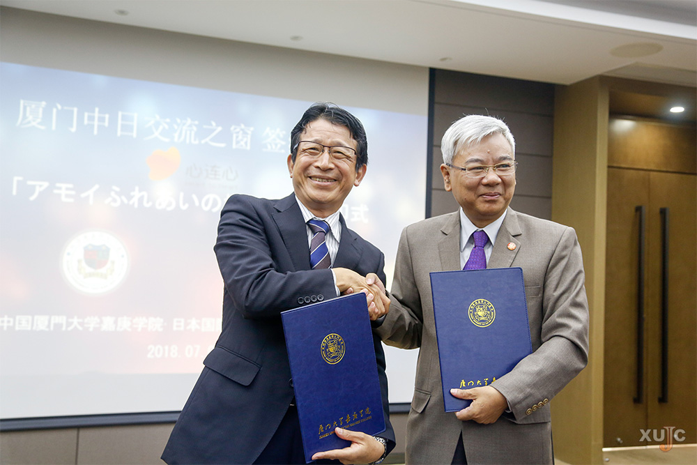 7月4日上午,在主楼群3号楼709会议室,嘉庚学院院长王瑞芳与日本国际交流基金会日中交流中心(以下简称“基金会日中交流中心”)所长堀俊雄签署了关于开设和运营“厦门中日交流之窗”的协议。基金会日中交流中心主任山崎贵哉和我校党委副书记、纪委书记张必华,相关单位负责人以及部分日语系学子参加了签约仪式。仪式由日语系主任余逸文主持。