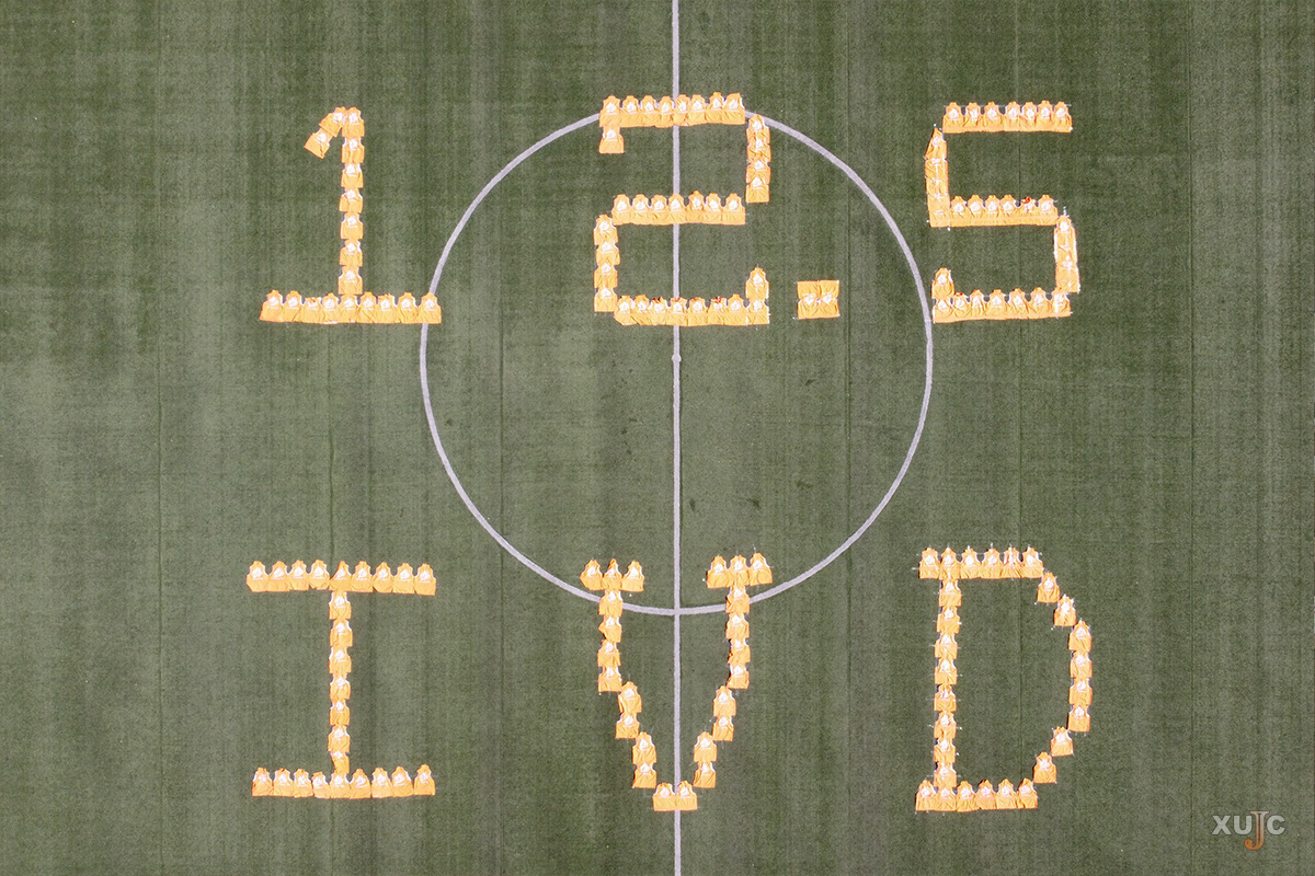 170件志愿者服组成了显眼的志愿者图标“12.5”“IVD”!为了迎接第37个国际志愿者日的到来,校青年志愿服务指导中心精心策划了志愿者航拍图标活动。图标中的“12.5”代表着国际志愿者日12月5日,“IVD”则是国际志愿者日的英文简称。