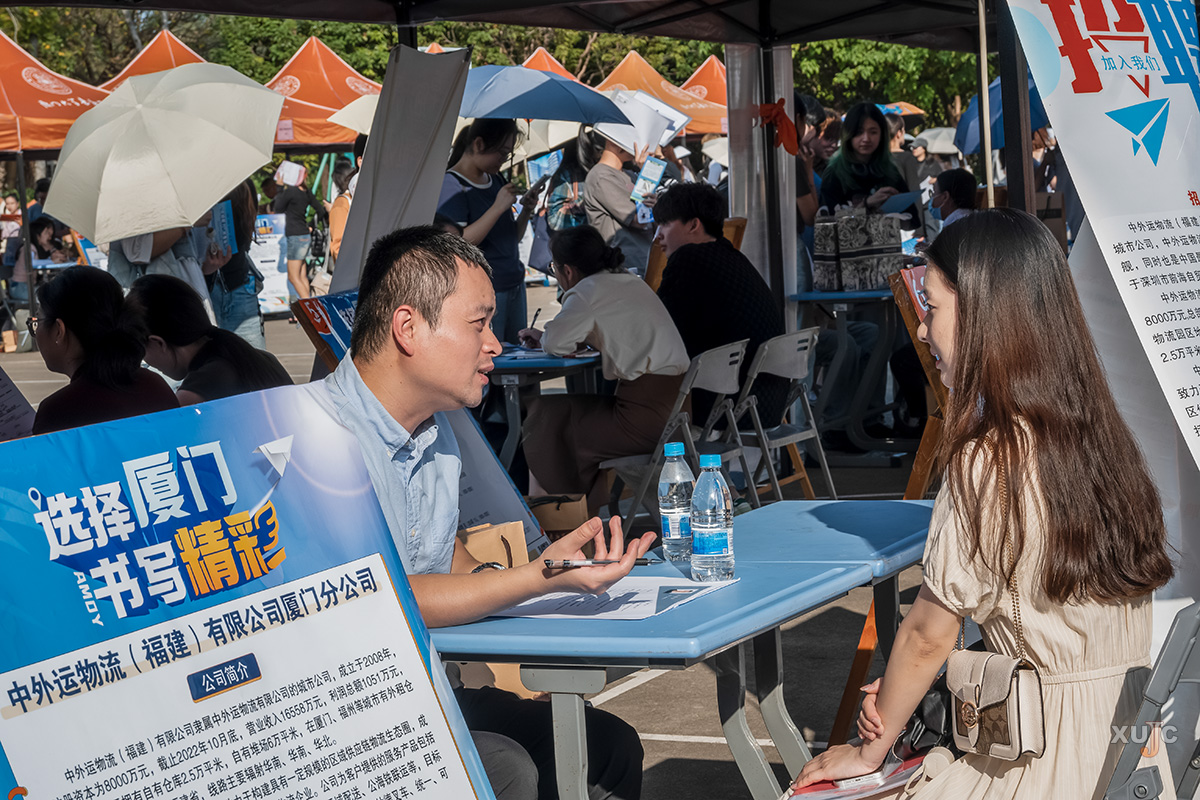 11月1日,厦门大学嘉庚学院2024届毕业生秋季校园招聘会在北区篮球场举行。156家招聘单位带着530个岗位、近4000个人才需求来到现场。