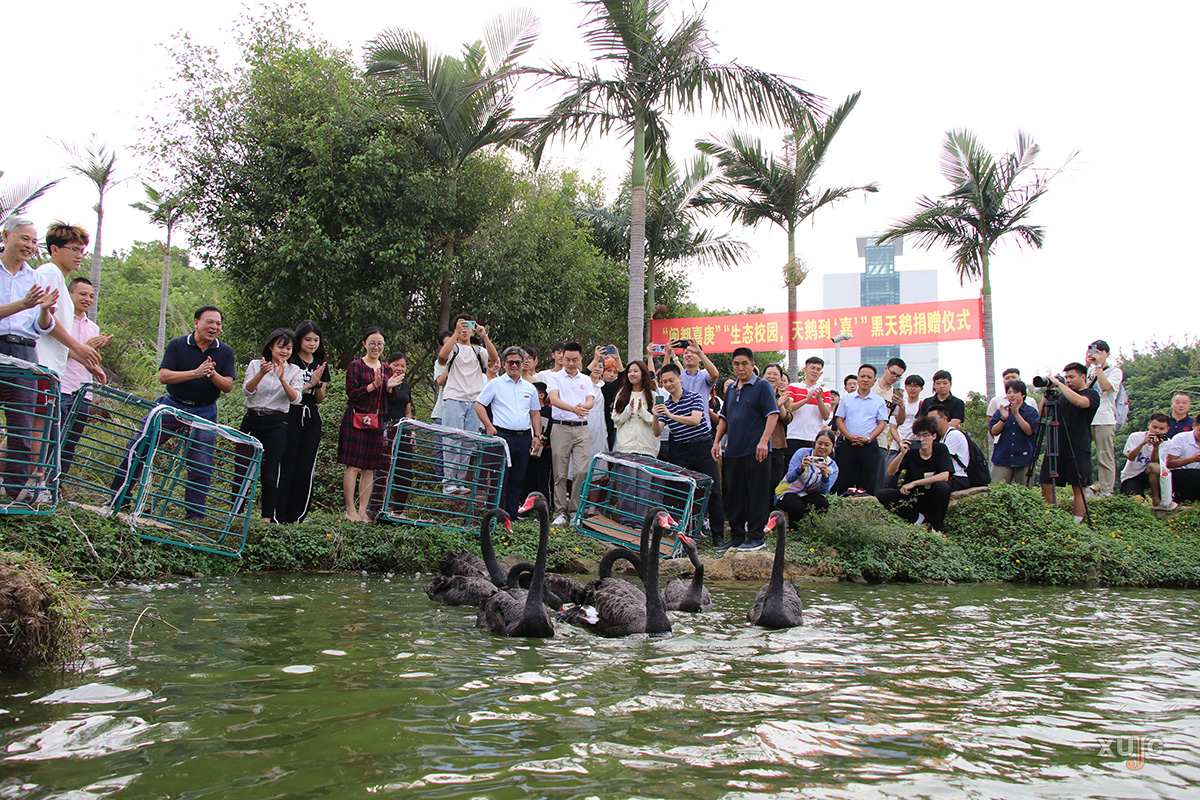 10月17日,“生态校园,天鹅到‘嘉’捐赠仪式”在栖霞湖畔举行。厦门湖里区园林绿化中心、厦门五缘湾文体旅发展有限公司、厦门湖里城颐公园管理有限公司向我校捐赠了6对12只黑天鹅。