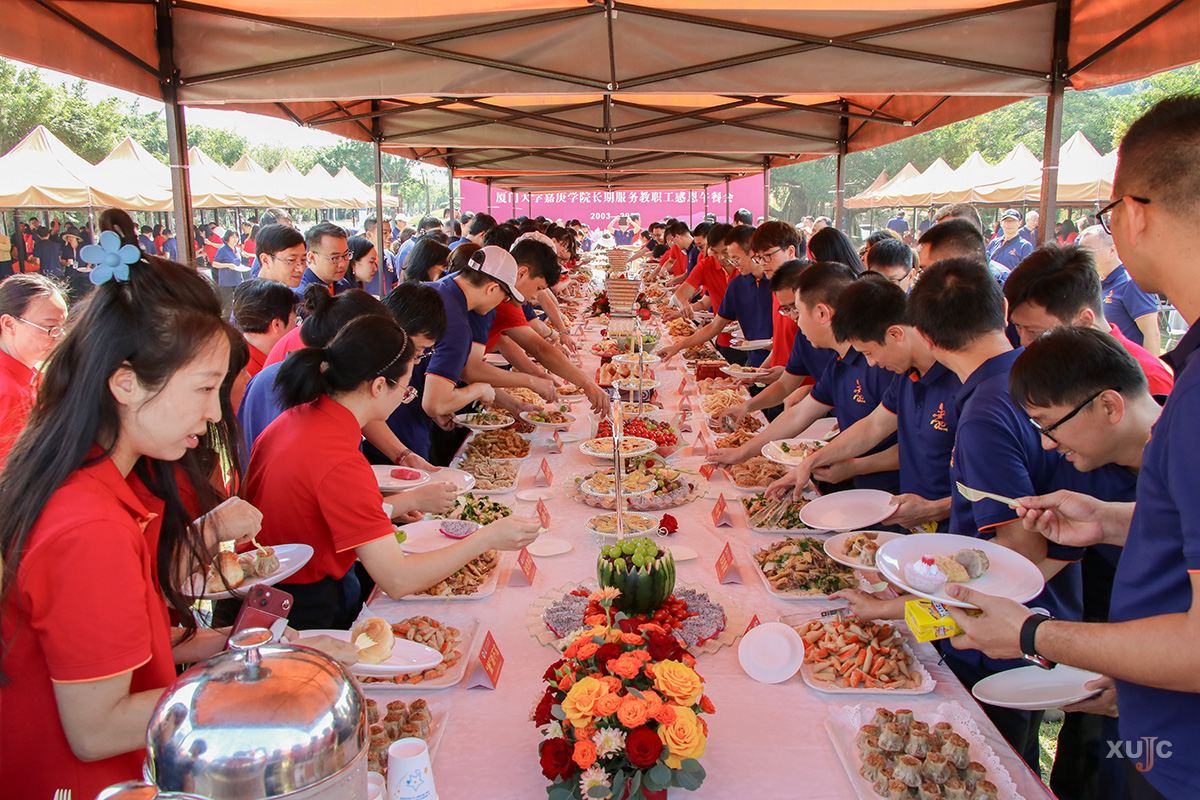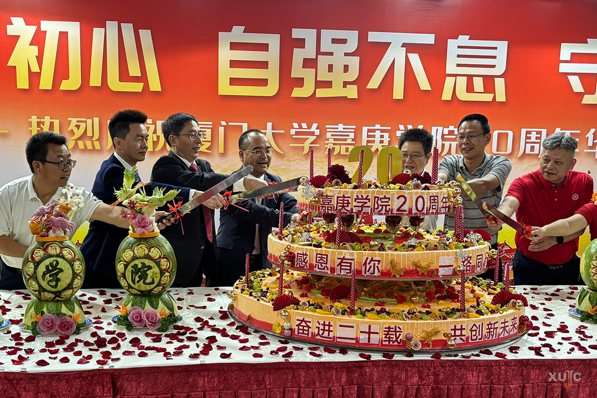 过生日当然要吃蛋糕!厦门大学后勤集团制作巨型校庆蛋糕祝贺我校建校20周年。该蛋糕有3层,底层直径近1.5米。每层的蛋糕之间用红酒杯支撑,红酒杯里装着玫瑰花瓣,爱意满满。蛋糕上除了水果、奶油外,还点缀着巧克力金币。每层还写上对“嘉”的祝福——“嘉庚学院20周年校庆”“感恩有你,一路同行”“奋进二十载,共创新未来”。巨型蛋糕出自后勤集团饮食服务中心5位师傅之手,共历时20个小时才完成。