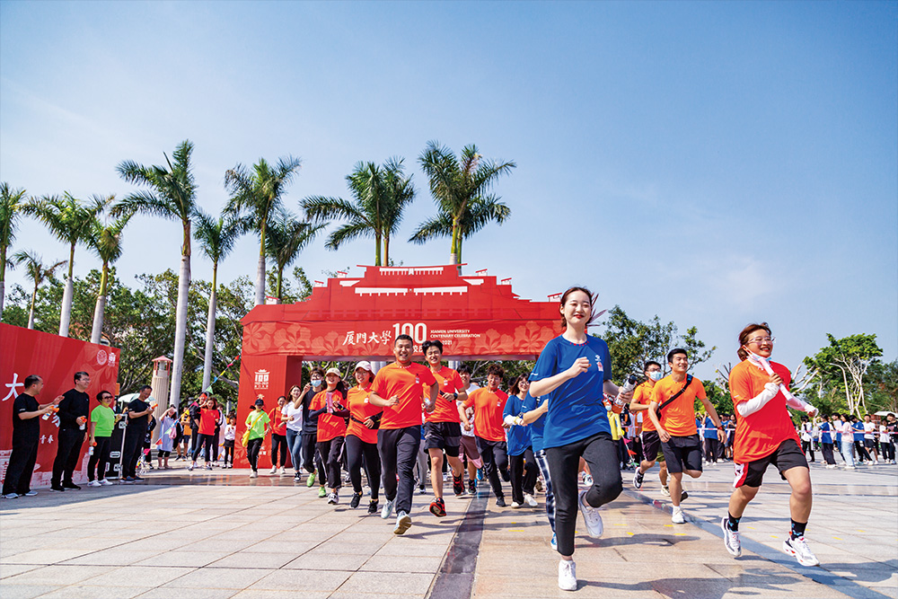 3月27日,以“百年厦大一家亲”为主题的青春环校跑在嘉庚广场启动。由漳州校区各单位的400位学生共同摆出的“XMU 100”造型方阵拉开了环校跑的序幕,表达了漳州校区莘莘学子对厦门大学百岁华诞的热切祝福。