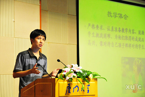 在百度网页输入“嘉庚学院最帅的老师”,就会跳出“卜祥忠”。这位人文与传播学院的老师,有着与影视明星陈道明极其相似的外形和卓尔不凡的气质,他的学生称呼他为“道明哥哥”。“道明哥哥”的普通话相当棒,不过,他并不只是靠浑厚的声音来赢得粉丝。他的课堂,是轻松自由活跃的。课上,他善于启发。课后,他会走下讲台,与学生像朋友一样聊家常,分享各种经历。“跳出名利之外,保持一颗淡泊的心。”这是卜祥忠的人生信条,他也曾在毕业典礼上用这句话勉励即将步入社会的嘉庚学子。