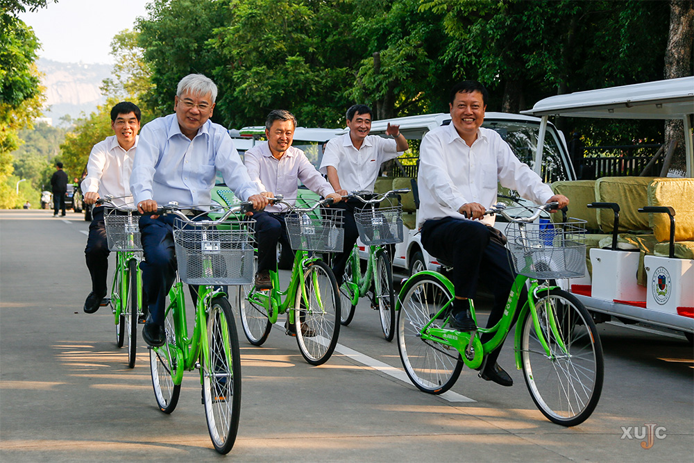 推文还抢“鲜”发布了校友林风杰赠送的“小绿”投放仪式现场盛况以及我校领导班子成员骑“小绿”游校园的温暖画面。