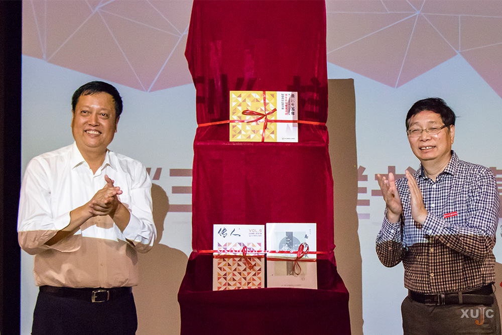 10月18日,由人文与传播学院编制的《传人》(第9期)、《南太武》(大学生文学作品集)、《走过十五年师生获奖作品名录》(合称“三刊”)首发式在主楼群1号楼517电影厅举行。我校党委书记林辉,人文与传播学院院长苏新春教授共同为“三刊”样书揭幕。