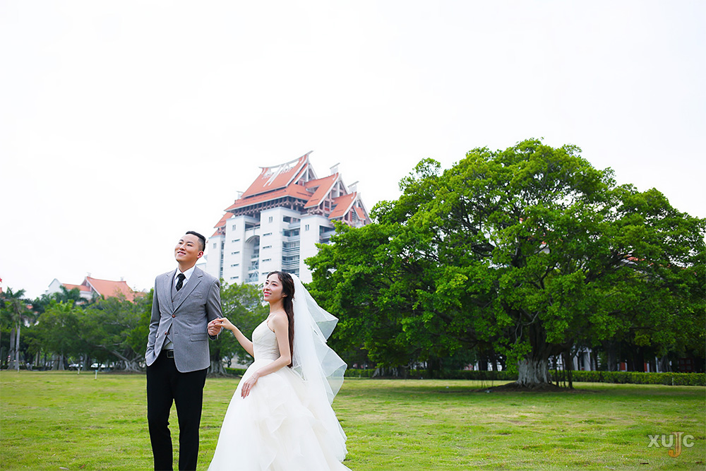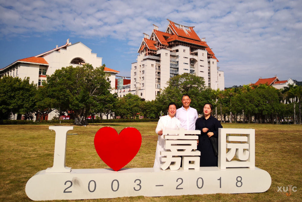“很有爱、很自由、很温馨、很舒服……”谈到对“嘉”的印象,他们说了很多美好的词语。毕业后,他们一直有个愿望,就是回“嘉”拍婚纱照,让“嘉”见证自己的幸福时光。而选择在校庆回“嘉”,则又多了一份美好的祝福,丁翰杰说:“我们也想陪‘嘉’过15岁的生日,祝福她越来越好。”这次回校,他们在林荫道、水上音乐广场、主楼前草坪等地拍了婚纱照,观看了校庆晚会,见了很多老同学……丁翰杰说:“回‘嘉’的感觉真的很幸福,我们好像又回到了大学时光。”