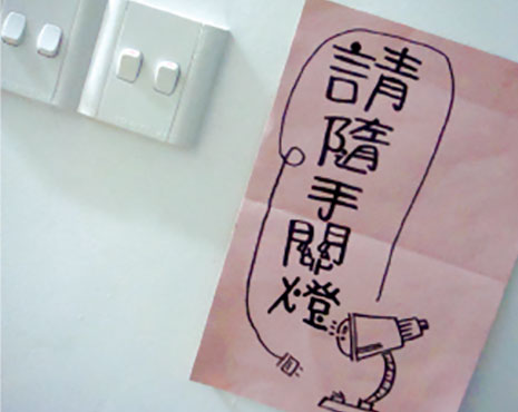 事实上,节约行为不仅限于节约用电,它还包括节约用水、节约用纸、节约用油等等,一个和谐美好的校园,节约意识应渗透到师生生活中的方方面面。在我们学院,老师们早已养成习惯,除了打印正式文件,其它打印纸都正反两面重复利用;有的老师会在同学们交作业时提醒大家把字体和行距缩小以节约纸张;有的老师在话简电池用完电时会提醒工作人员,将其放置在遥控器内继续使用......